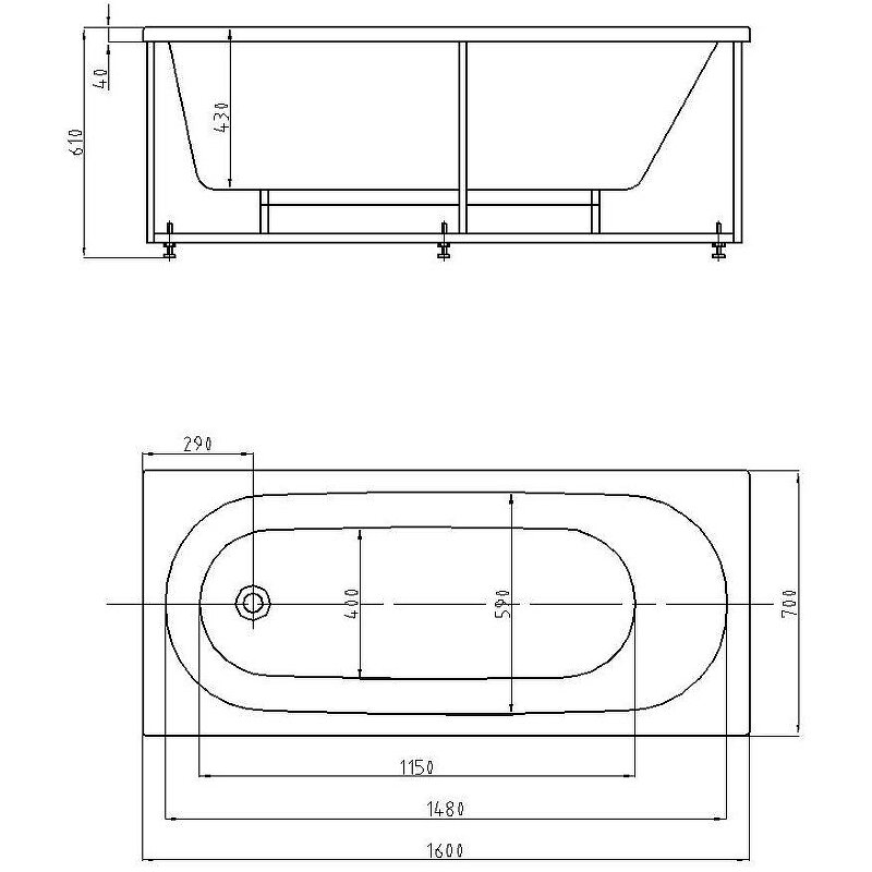 Оберон 160 пустая с фр.экр.(слив слева, вклеенный каркас) информация: