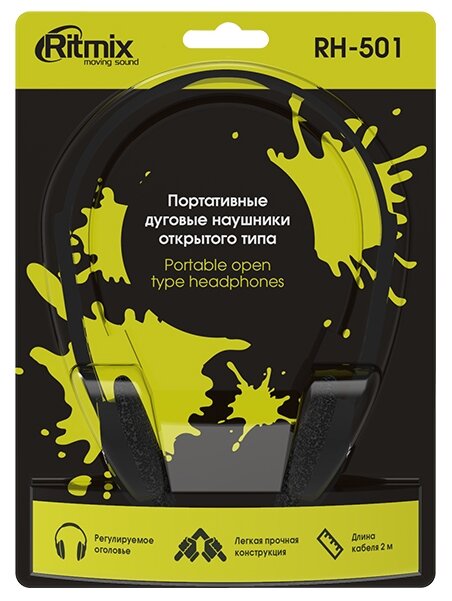 Наушники Ritmix RH-501 накладные кабель 2м, чёрные 464 ₽