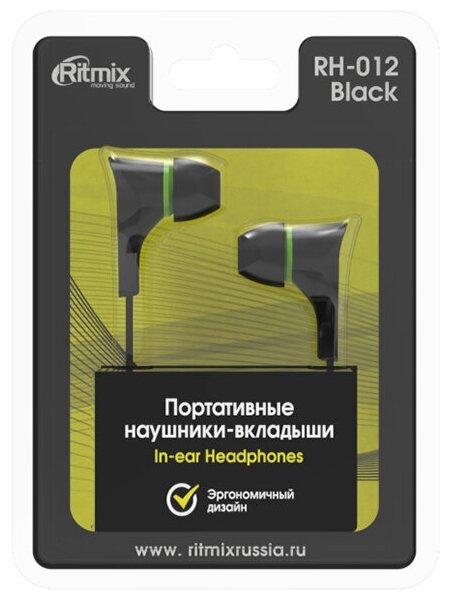 Ritmix RH-012 Black (внутриканальные, 20Гц-20кГц, 32Ом, 104 дБ/мВт, 3.5мм, кабель 1,2 м) информация: