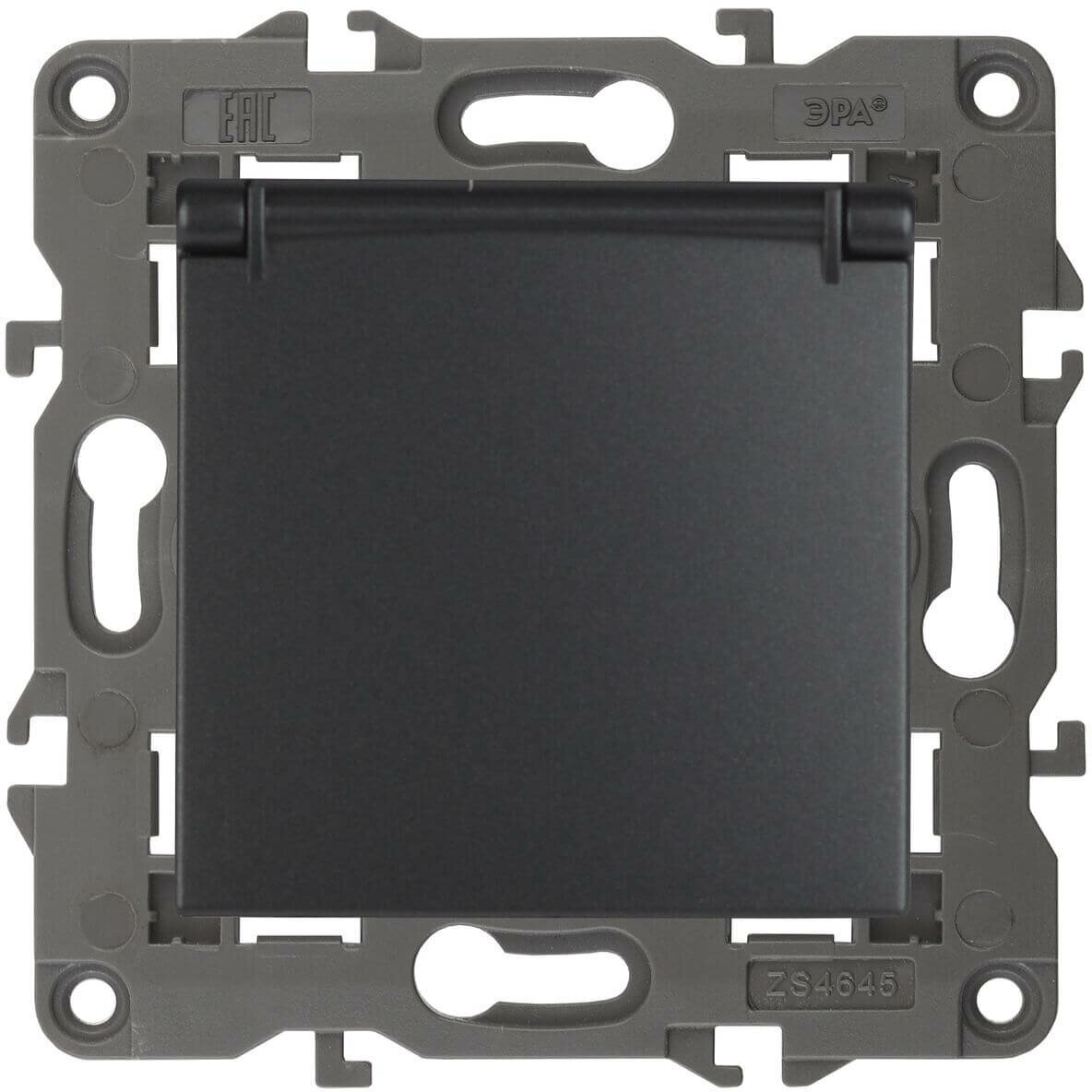 14-2103-05 ЭРА Розетка 2P+E Schuko со шторками с крышкой, 16A-250В, IP20, Эра Elegance, антрацит (10