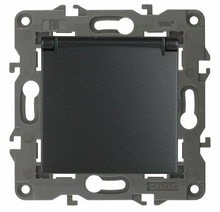 Розетка 2P+E Schuko со шторками с крышкой, 16A-250В, IP20, Эра Elegance, антрац информация: