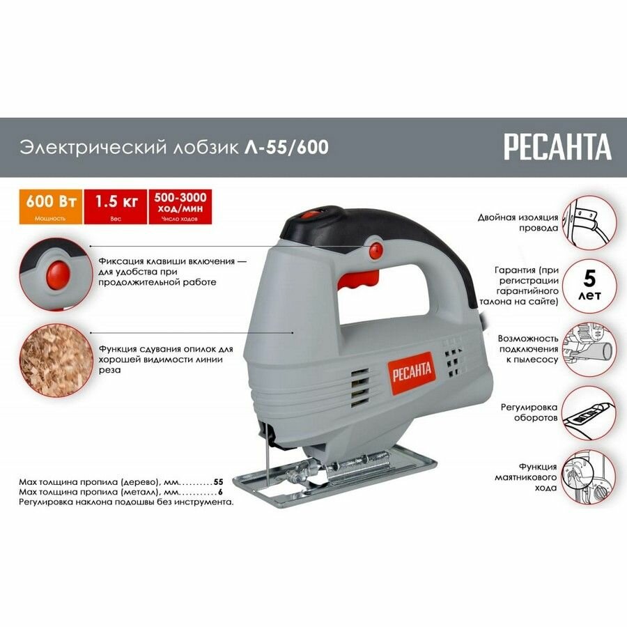 Лобзик электрический Ресанта Л-55/600 информация: