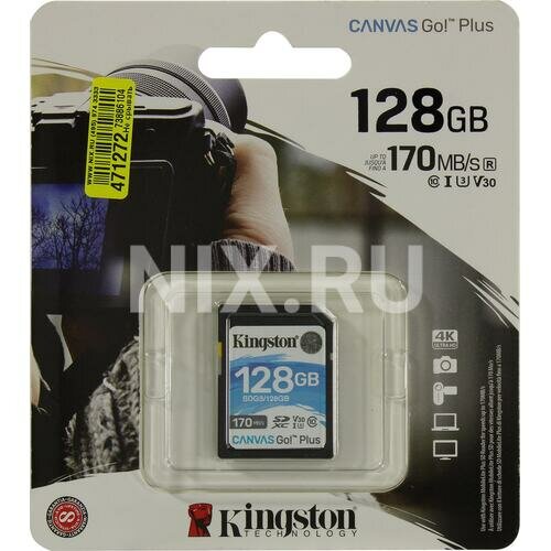 Карта памяти SDXC UHS-I U3 Kingston Canvas Go! Plus 128 ГБ, 170 МБ/с, Class 10, SDG3/128GB, 1 шт., без адаптера