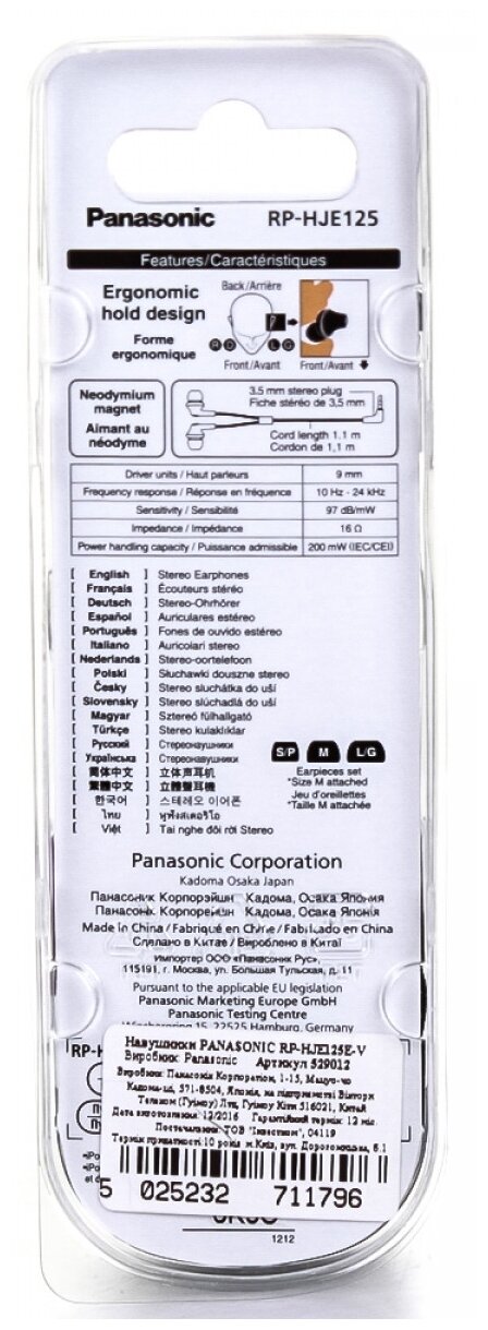 Panasonic RP-HJE125E-Z (Наушники)