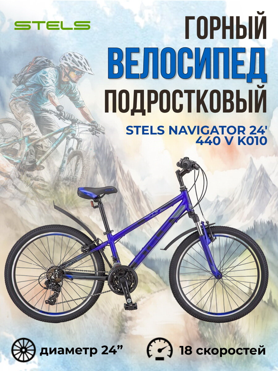 Велосипед подростковый горный с колесмиа 24" Stels Navigator 440 V K010 синий, рама 12" 2020 год информация: