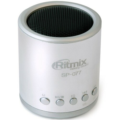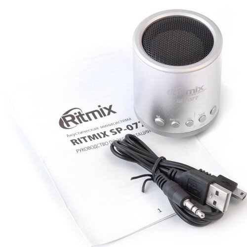 Отзывы на Колонка портативная Ritmix SP-077 питание от USB, без аккумулятора - 3 Вт, FM, плеер - серебристые