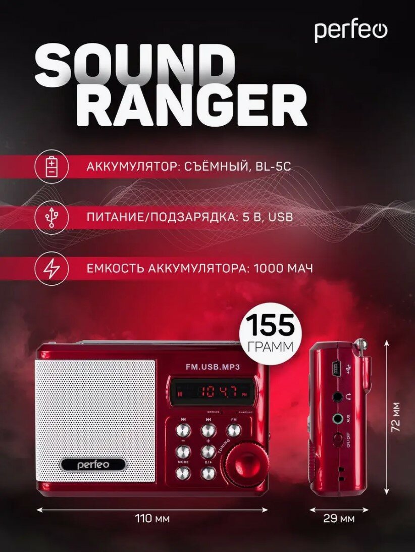 Радиоприёмник Perfeo Sound Ranger, красный информация: