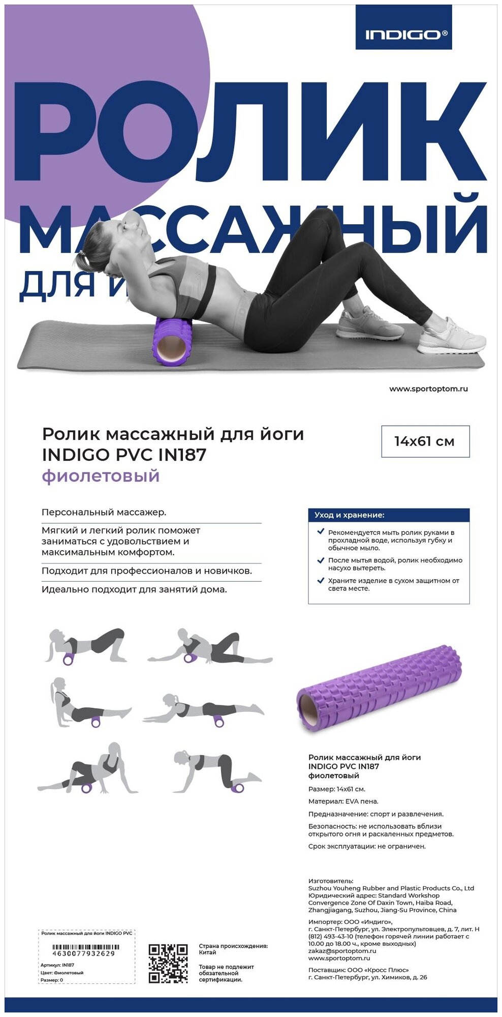 Ролик массажный для йоги INDIGO PVC IN187 61*14 см Фиолетовый информация: