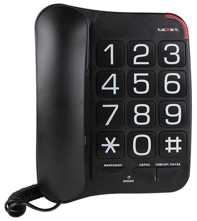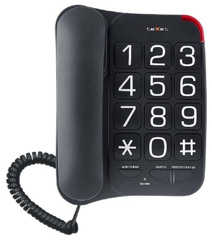 Телефон проводной teXet ТХ-201, повторный набор, крупные клавиши, черный ( Артикул 337859 ) 1 359 ₽