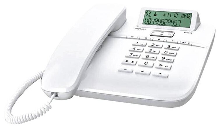 Телефон Gigaset DA510, память 20 номеров, спикерфон, тональный/импульсный режим, повтор, белый, S30054S6530S302
