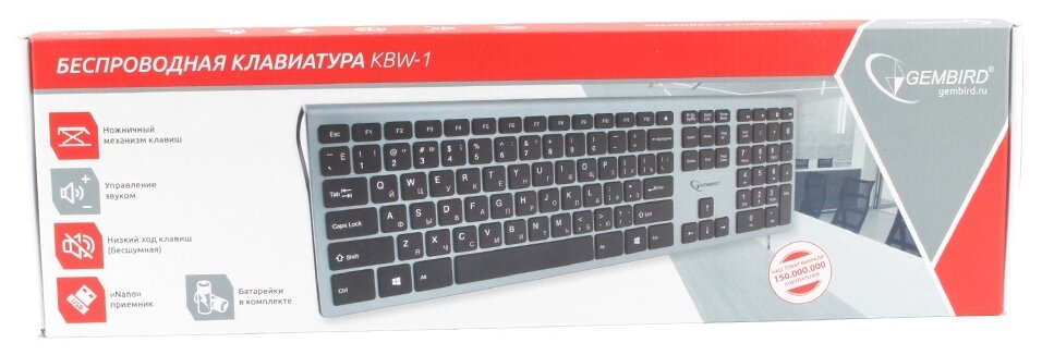 Беспроводная клавиатура Gembird KBW-1 Silver USB серебристый, русская