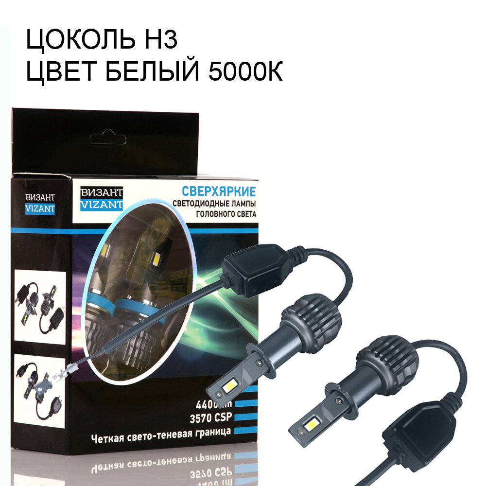 10 цен на Светодиодные лампы Vizant D20 цоколь H3 CSP 3570 Philips 24W 4400lm 5000k (2 шт.)