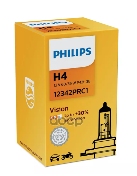10 цен на Лампа Накаливания H4 (P43t-38), 12в 60/55вт, Premium +30% Philips арт. 12342PRC1