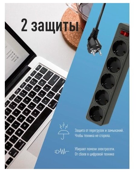 Отзывы на Сетевой фильтр Космос Электро Космос 5х5м с заземл. 10А IP20 2.2кВт 3х0.75 индик. сети, черный, FKsm5m-5g(B)