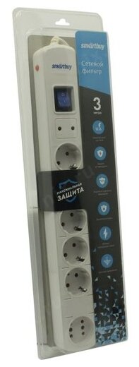 Отзывы на Сетевой фильтр Smartbuy, 16А, 3500 Вт, 6 гнезд, с з/ш, земля, ПВС 3x1.0, 3 м, белый (SBSP-30W-Pro)