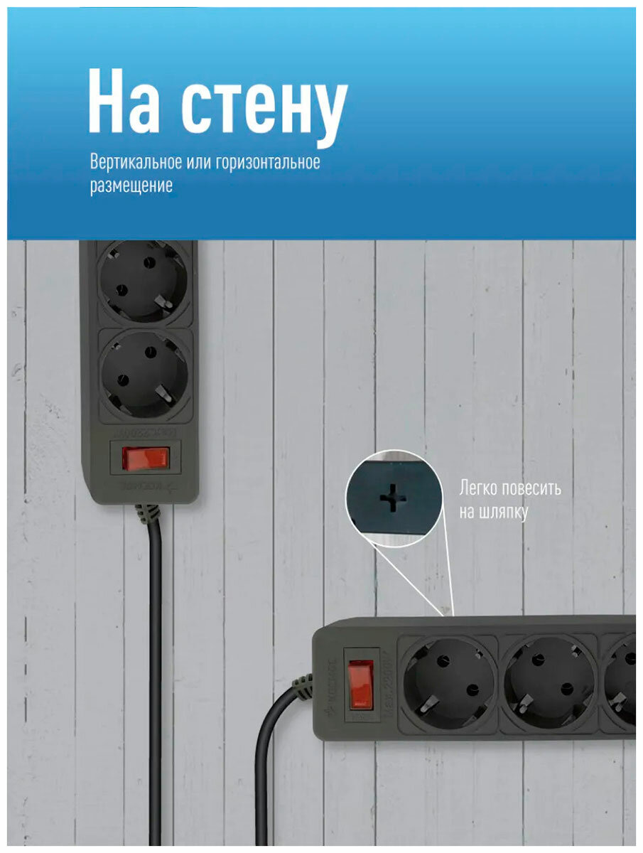 Сетевой фильтр Космос 3 м 5 розеток пвс 3х0 75мм2 черный информация: