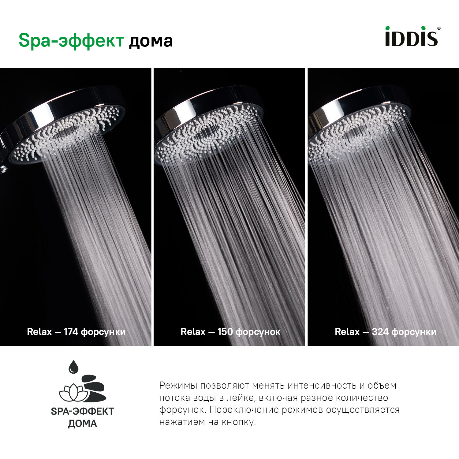 Лейка для душа IDDIS SpaHome 3-режимная хром