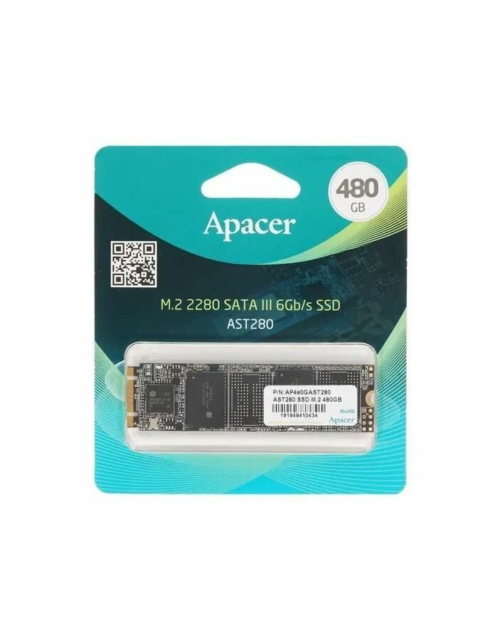 Твердотельный накопитель Apacer SSD AST280 480Gb SATA M.2 2280, R520/W495 Mb/s, 3D TLC, MTBF 1,5M, 280TBW, Retail, 3 years (AP480GAST280-1) 3 574 ₽