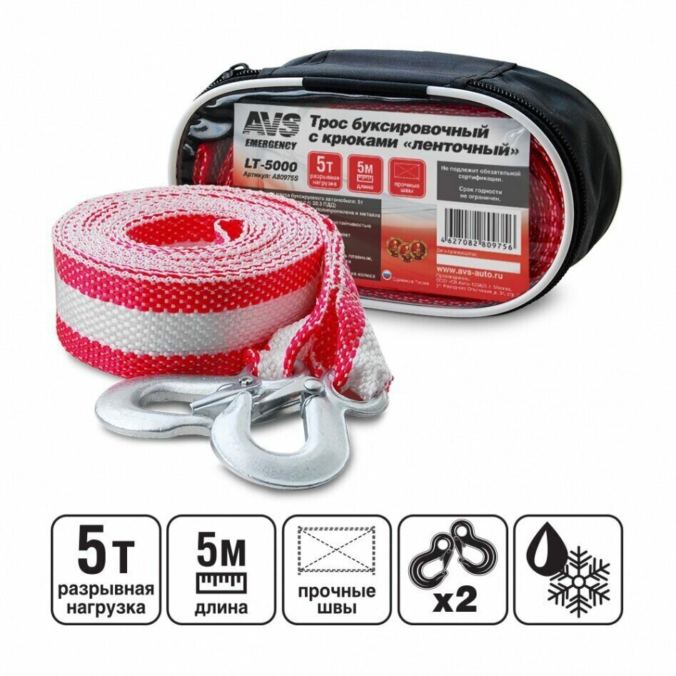 Трос Буксировочный С Крюками Avs Lt-5000 5Т 5М, В Сумке AVS арт. A80975S