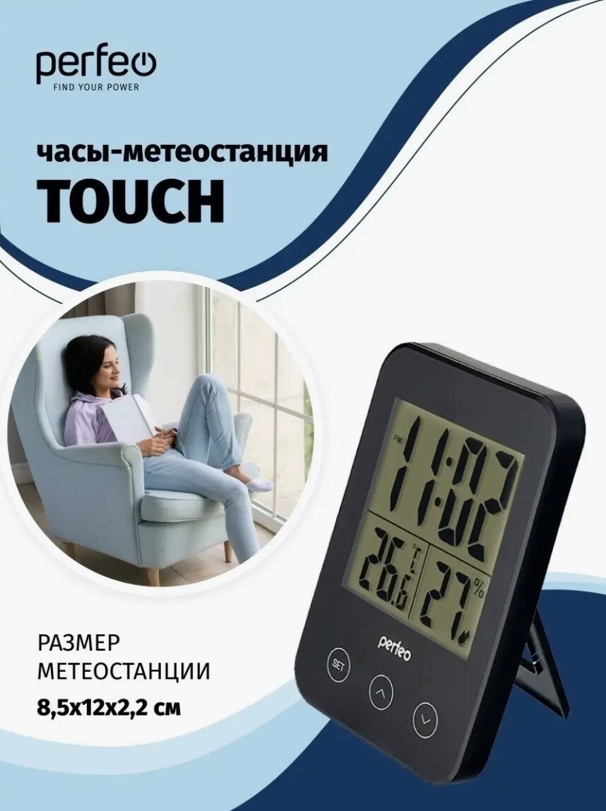 Perfeo Часы-метеостанция "Touch", чёрный, (pf-s681) время, температура, влажность PF-S681 .