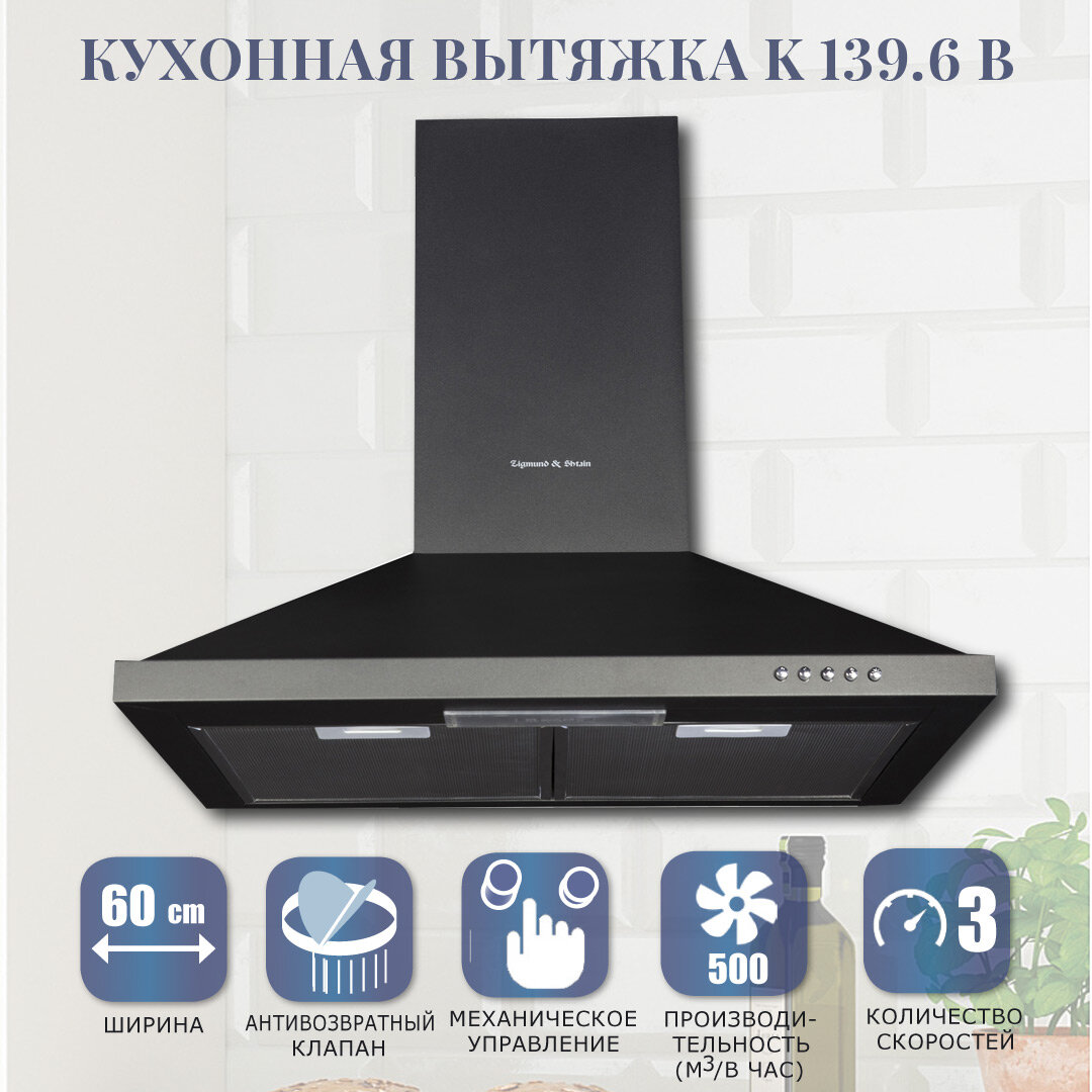 Вытяжкa Zigmund&Shtain K 139.6 B/ чёрн 60 смТурция /500 куб. м/ч