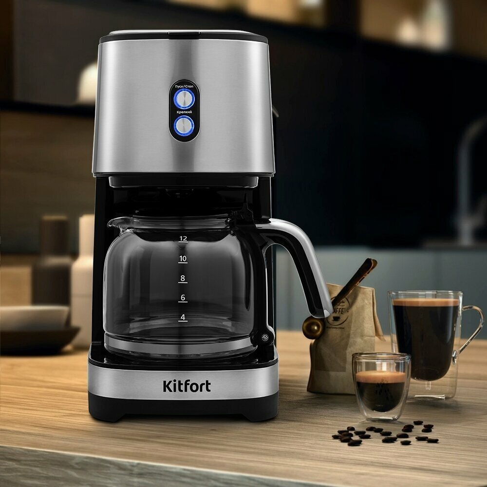 Кофеварка KitFort KT-750, капельная, черный / серебристый [кт-750]