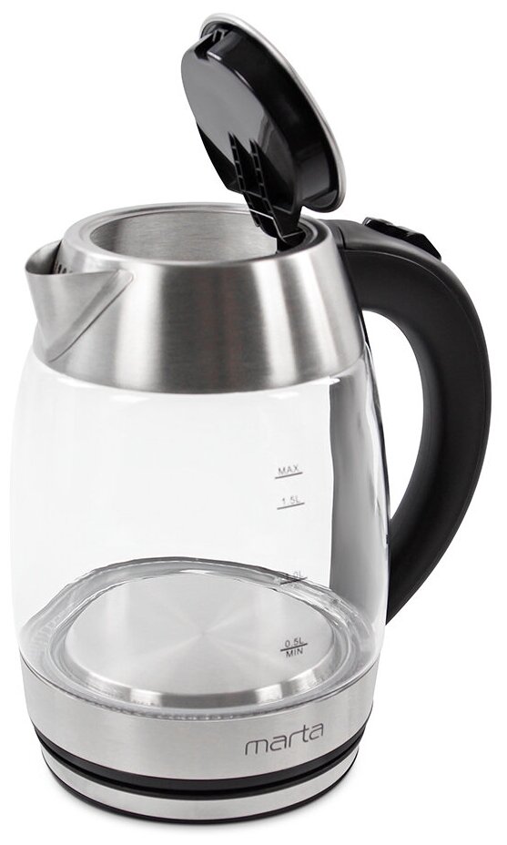 Электрический чайник MARTA MT-KT4655A черный стеклянный с заварником, 1.8 л