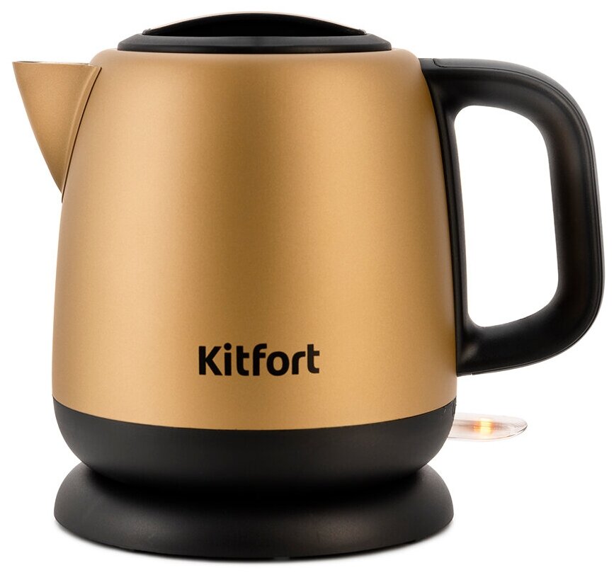 Чайник электрический KITFORT 1 л, 1630 вт, нагревательный элемент, сталь, золотистый (КТ-6111)