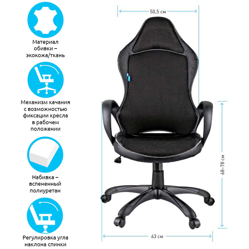 Кресло игровое Helmi "Virage", экокожа, ткань черная (274806)
