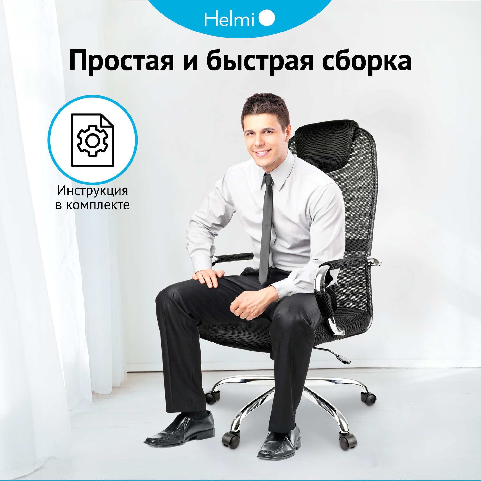 10 цен на Кресло руководителя Helmi HL-E25 "Intelligent", ткань/сетка черная, подголовник хром