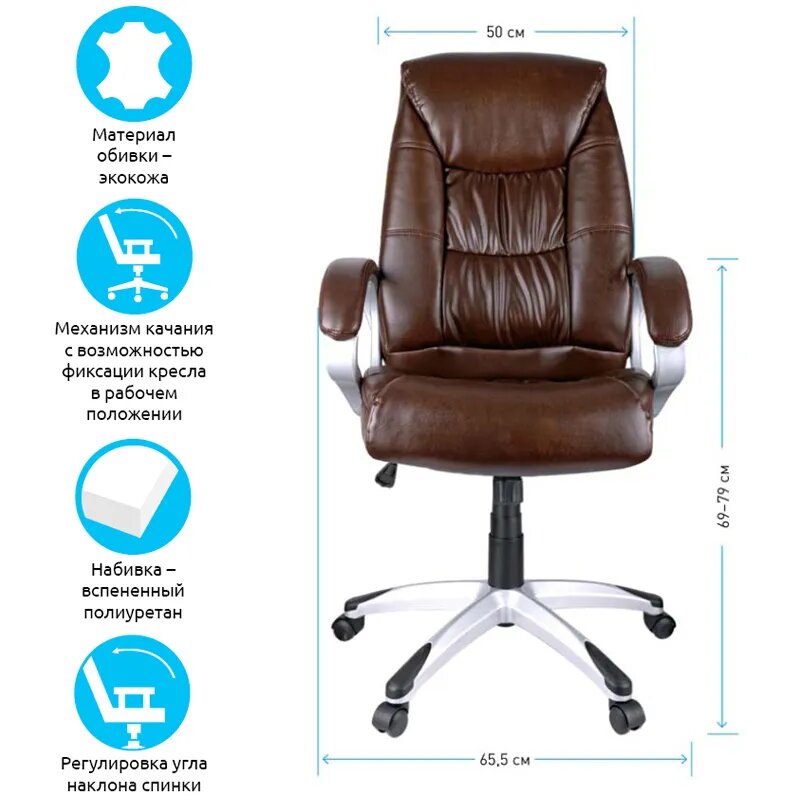 10 цен на Кресло руководителя Helmi HL-E06 «Balance», экокожа коричневая, механизм качания