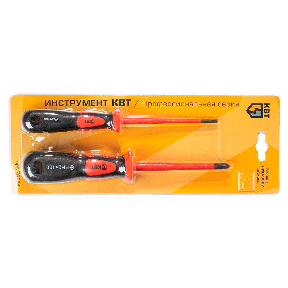 Набор диэлектрических отверток КВТ НИО-3302 с профилями шлиц и крест (2 шт.), серии слим {78351}