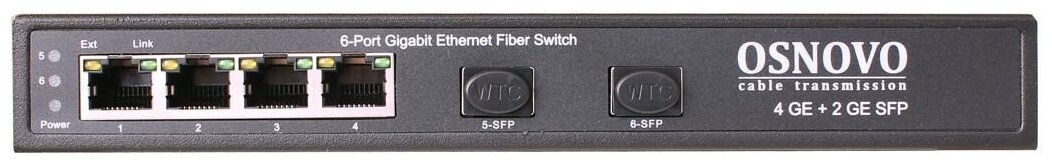 OSNOVO Гигабитный коммутатор на 6 портов, 4*10/100/1000Base-T, 2*SFP 1000Base-FX