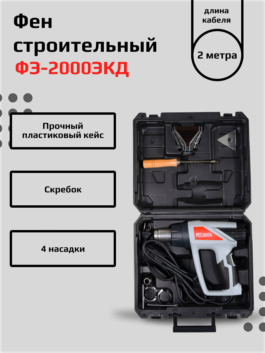 Фен Технический 2000 Вт Набор Ресанта В Кейсе Ресанта арт. ФЭ-2000ЭК