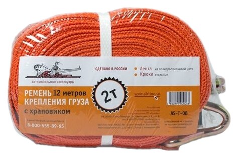 Ремень крепления груза с храповиком 12 м, 2 т (AS-T-08) AIRLINE