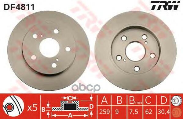 TRW DF4811 Торм.диск задн.[259x9] 5 отв. 2шт 6 680 ₽
