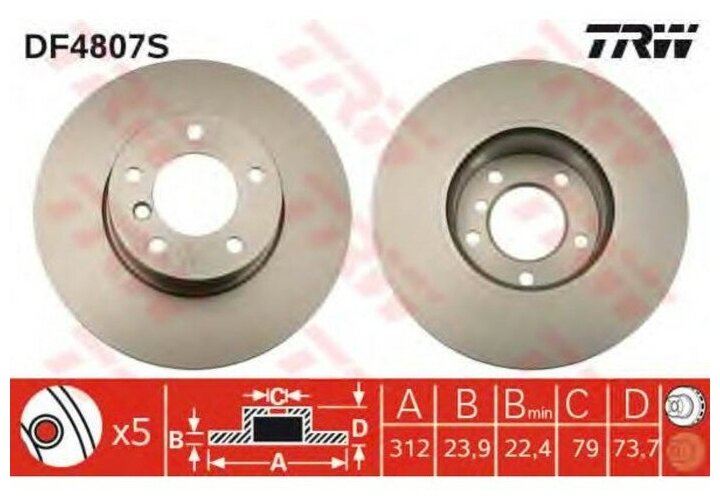 Диск тормозной вентилируемый для автомобиля BMW, TRW DF4807S (1 шт.)