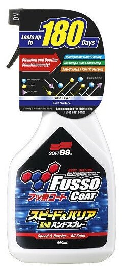 Покрытие для кузова защитное Soft99 Fusso Coat Speed & Barrier Hand Spray для всех цветов, 500 мл