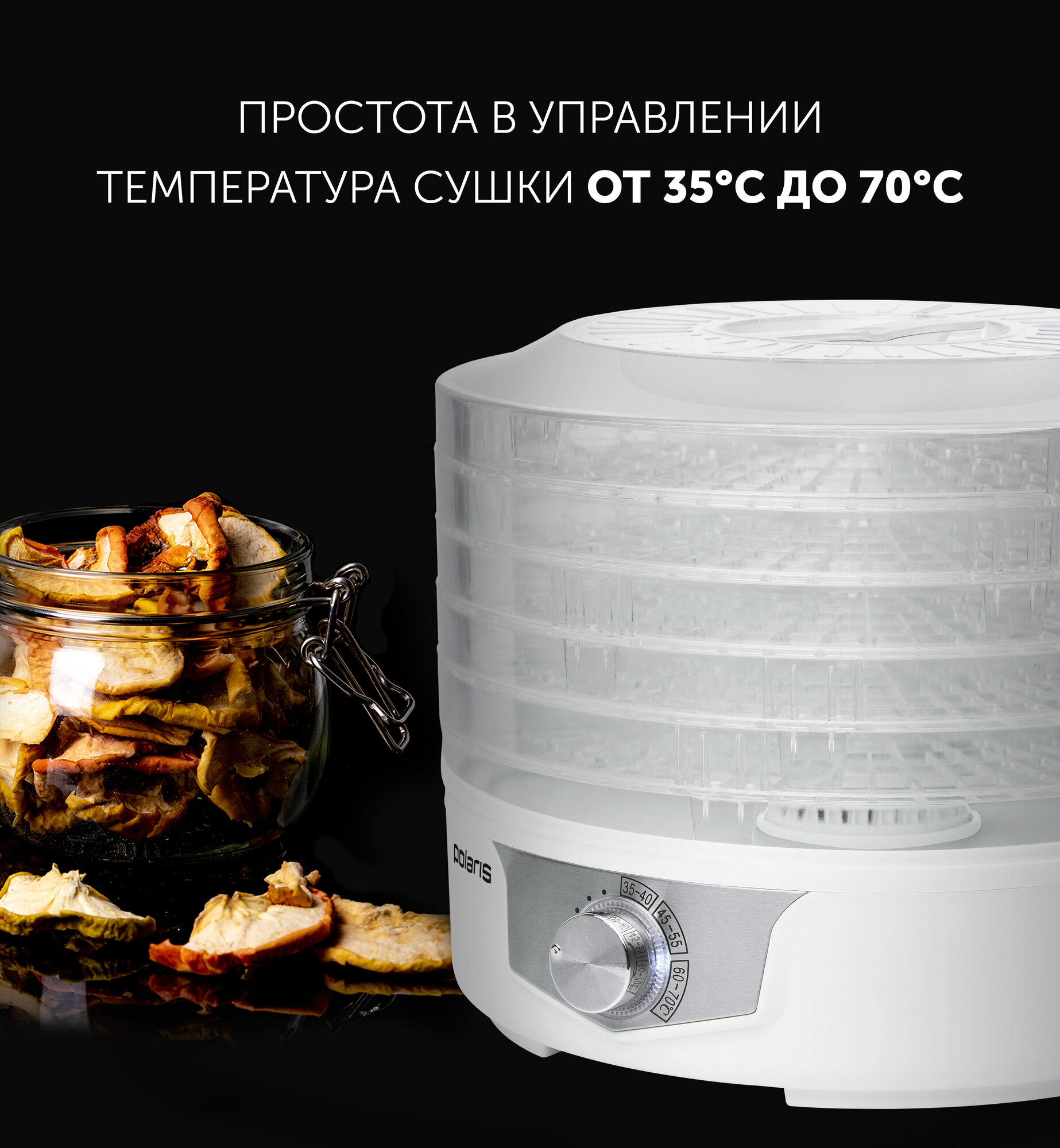 Сушилка для овощей и фруктов Polaris PFD 2805, белый, 5 поддонов информация: