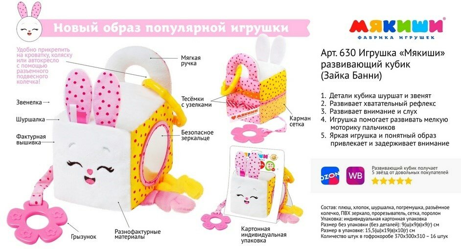 10 цен на Игрушка "Мякиши" развивающий кубик (Зайка Банни)