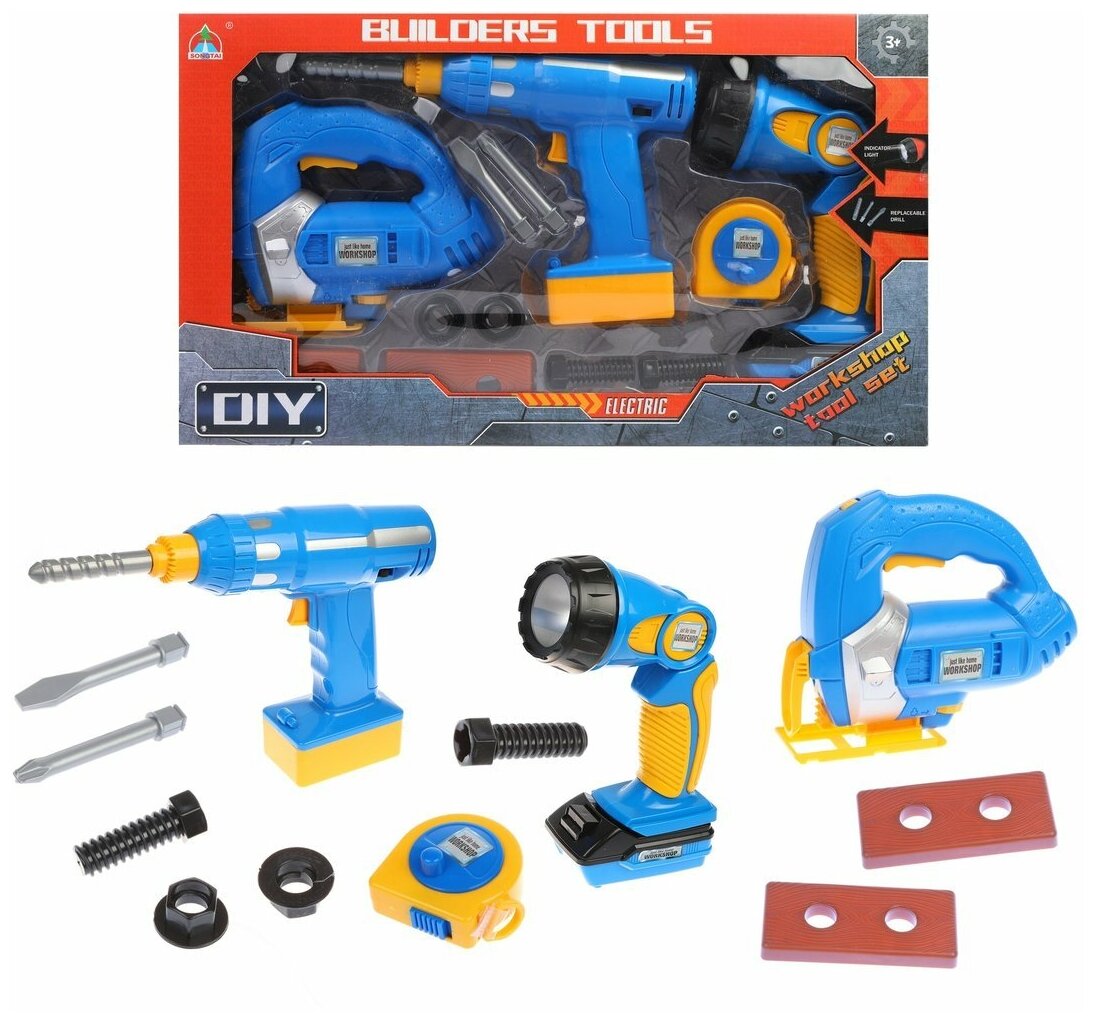 Набор инструментов Наша Игрушка электродрель, электрофонарик, электролобзик, 10 аксессуаров информация: