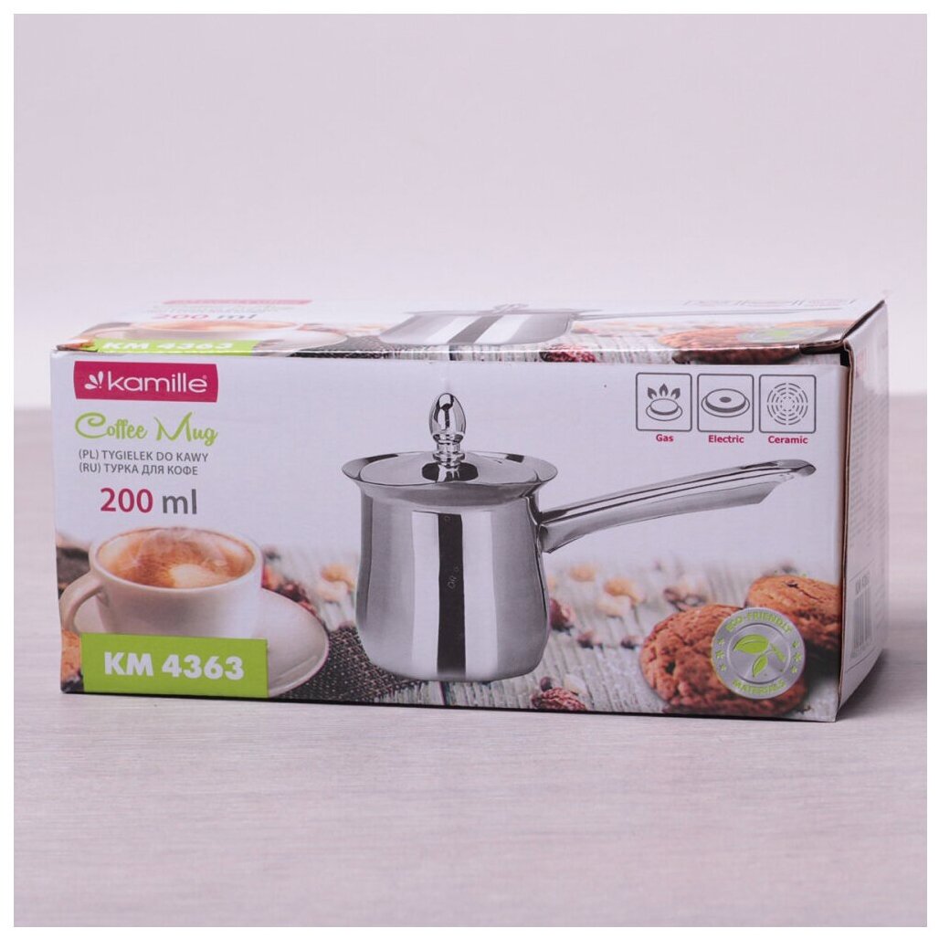 Турка для кофе Kamille 200мл с крышкой из нержавеющей стали информация: