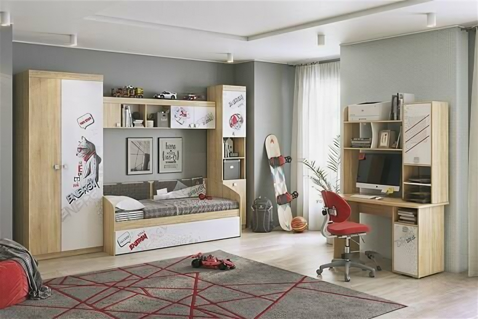 Детская кровать МебельСон Энерджи Дуб Сонома / Белый Без бортика