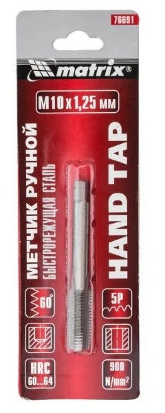 Метчик ручной М10 х 1,25 мм, HSS// Matrix 76691 . информация: