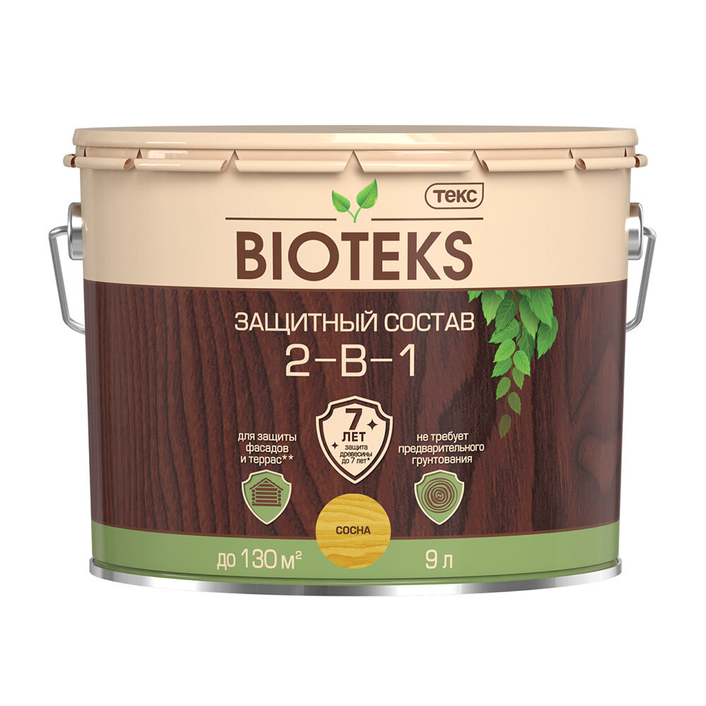 Антисептик Текс Bioteks 2-в-1 декоративный для дерева сосна 9 л информация: