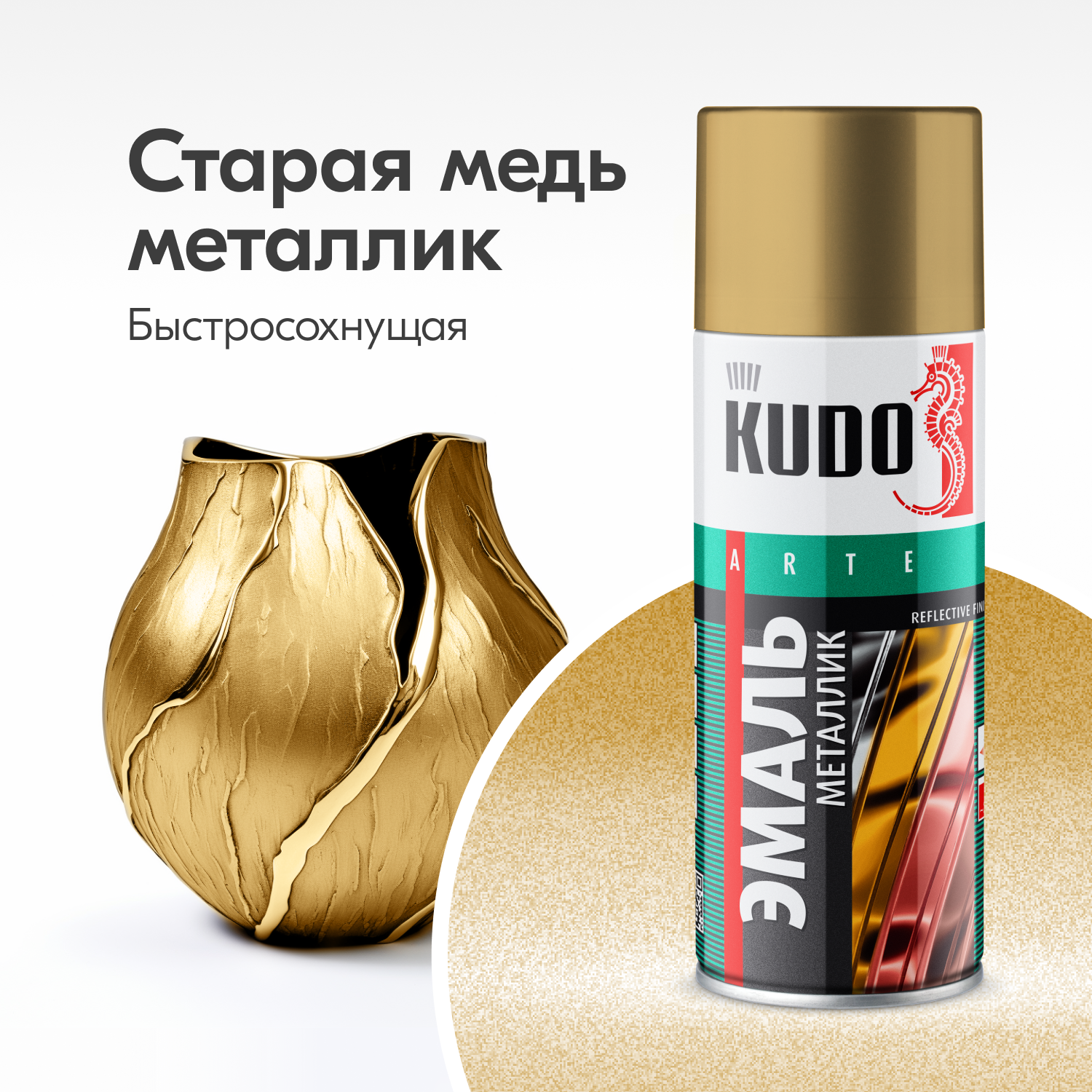 Кудо KU-1028 Эмаль аэрозольная золото (0,52л) / KUDO KU-1028 Эмаль аэрозольная алкидная золото (0,52л)