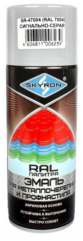 Отзывы на Эмаль для металлочерепицы и профнастила Skyron сигнально-серая RAL-7004 SR-47004 .