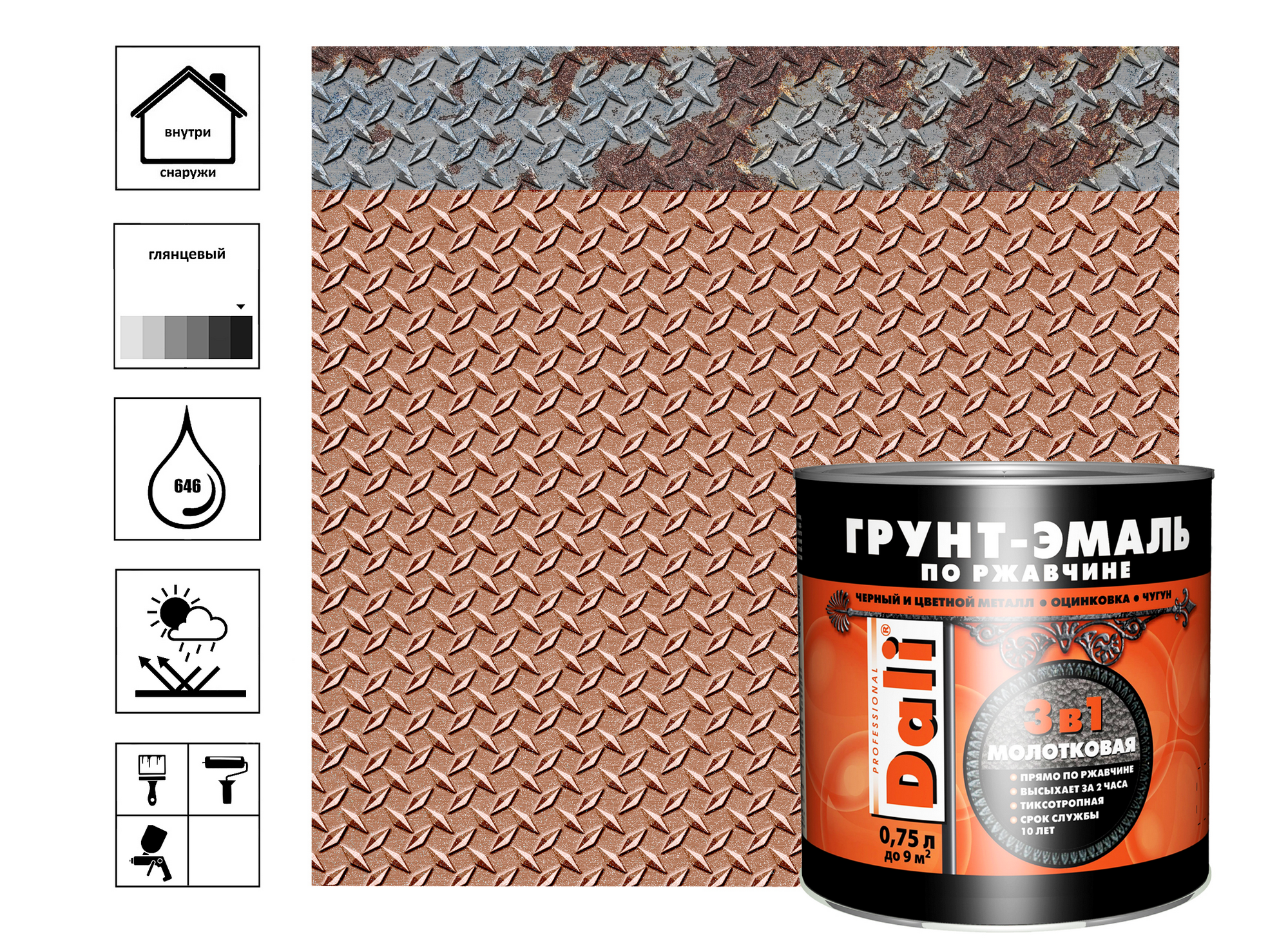 Грунт-эмаль по ржавчине 3в1 молотковая DALI (бронзовый / 0.75л.) информация: