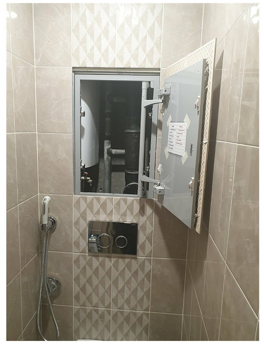 Скрытый ревизионный люк 50х100 (ШхВ) под плитку «Евроформат» Практика, нажимной, распашной