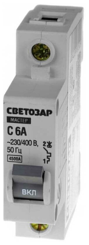 Отзывы на Выключатель СВЕТОЗАР автоматический, 1-полюсный, ″С″ (тип расцепления), 6 A, 230 / 400 В
